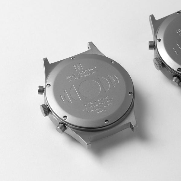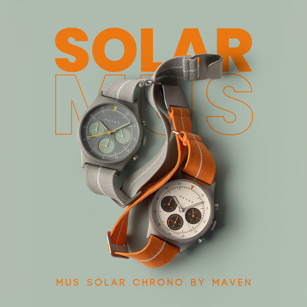 • Là biểu tượng cho hình dáng tối giản của MAVEN, MUS Solar Chrono có thiết kế tương tự như bộ sưu tập MUS nhưng có một số nâng cấp về hình thức bên ngoài và bộ máy tiên tiến chạy bằng năng lượng mặt trời. Được cung cấp năng lượng từ chuyển động năng lượng mặt trời của Seiko Epson, đồng hồ phụ thuộc vào khả năng tiếp xúc với ánh sáng trực tiếp, cho dù đó là ánh sáng mặt trời hay dưới đèn bàn của bạn. Sau khi được sạc đầy, bộ lưu trữ năng lượng có thể kéo dài tới 5 tháng và có thể dễ dàng nhìn thấy chỉ báo dự trữ năng lượng.